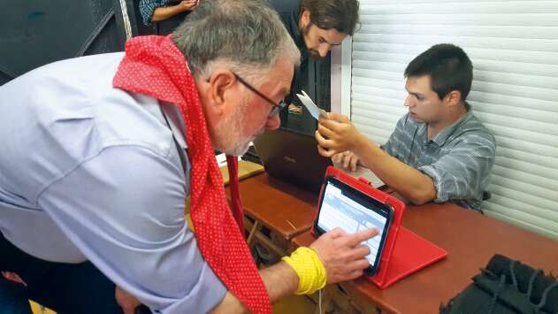 Ordinadors a ple rendiment al local d'assaig de la Colla Jove Xiquets de Tarragona per controlar l'assistència.