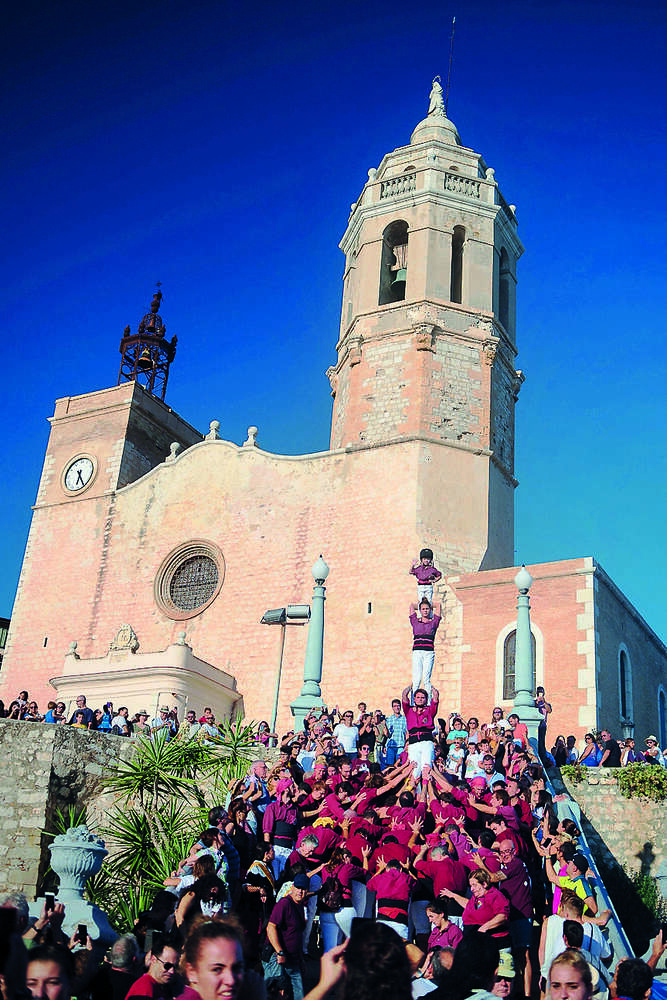 - Pujada i baixada del pilar de 4 per les Escales de la Punta, a Sitges, el 23 de setembre del 2018. (Foto: Arxiu Colla Jove de Castellers de Sitges)