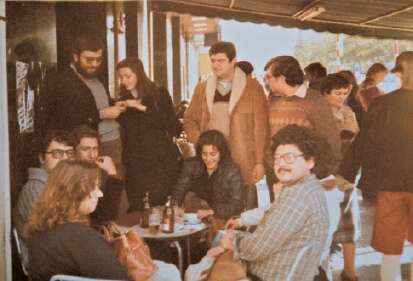 Inicis de la Colla Jove Xiquets de Tarragona. Els impulsors de la colla, que es reunien sovint al bar Moto Club de la Rambla Nova tarragonina.