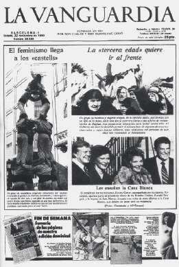 Reproducció de la portada de La Vanguardia del 22 de novembre del 1980, amb una imatge de les Minyones de Terrassa.
