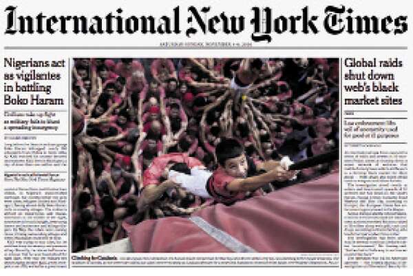 Els castells han estat portada de capçaleres tan prestigioses i allunyades físicament com ara l'International New York Times, en la seva edició del 8 de novembre del 2014 (en què es comparava la situació del món casteller amb el procés independentista de Catalunya)...