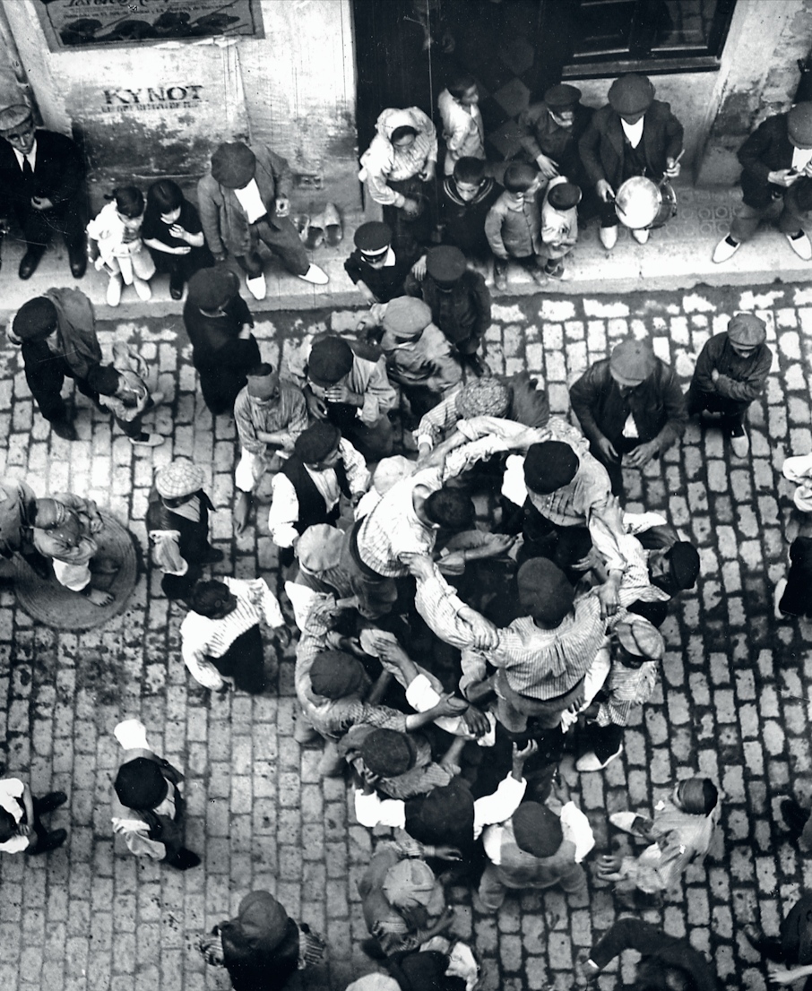 Per parlar d’allà on té lloc la realització del fenomen a tractar, podríem haver substituït el vell terme «carrer» per l’eufemisme «espai públic», que és com en l’actualitat solen denominar-lo en el ram de la sociologia, i sobretot en el dels tècnics urbanistes que tracten la matèria, als quals el vell terme els deu semblar massa específic, massa exacte, compromès i tot, ja que «carrer» dibuixa —juntament amb la gent que el pobla, els veïns, que a més a més l’usdefruiten i se’l senten seu— un espai certament conflictiu. En canvi, «espai públic» és un concepte molt més innocu i mal·leable, ja que espai és alguna cosa imprecisa —fins i tot hi ha espais inexistents—, mentre que públic importa un concepte vague de la societat: el públic —excepte per als actors i actrius, que es veuen constrets a tractar-lo amb deferència— és un sector de la societat desdibuixat i conformable segons l’interès de qui el defineix. Per tant, sociòlegs i tècnics d’urbanisme prefereixen espai públic, que sempre es pot bastir segons els interessos a tractar.17 Nosaltres preferim veure i sentir la qüestió a què ens referim, els castells, al carrer. El carrer, que suggereix carretera, camí, carreu, carro…, o sigui, matèria viva i transformable a partir de les necessitats i les forces humanes. Així que tenim els castells —amb tota la seva potència social— al carrer, a la via pública, a l’àgora: allà on la societat viu i es comunica en totes les seves formes possibles, oralment, físicament, artísticament; allí on l’exaltació, la celebració i també la insurrecció (per què no?) es fan possibles, multitudinàries i realitzables.