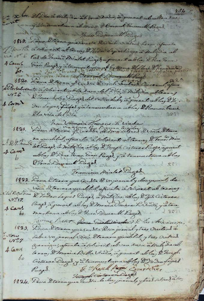 Fragment de la recanació realitzada entre 1816 i 1818 en què s’aprecia el propietari de la parcel·la 1823 i el renom. Es tracta de Jaume Batet de las Anxanetas