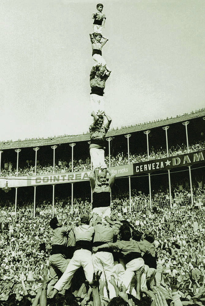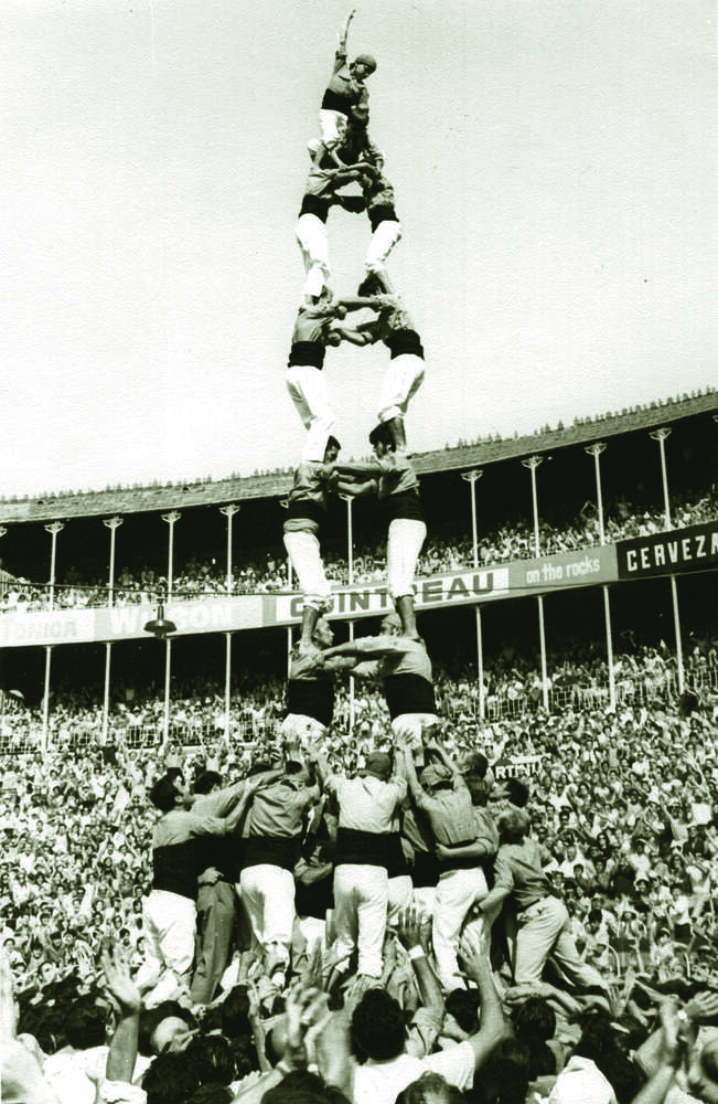 La victoriosa torre de 8 amb folre descarregada pels Nens del Vendrell, el 27 de setembre del 1970, en el marc del concurs de Tarragona.