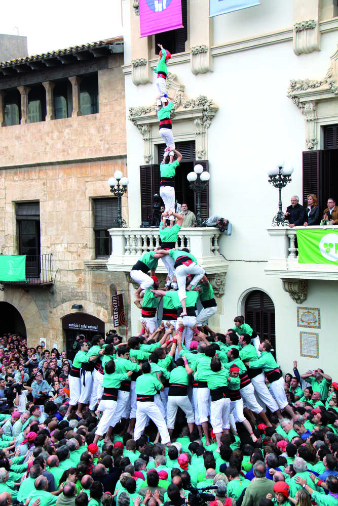 La primera torre de 8 neta descarregada de la història, obra dels Castellers de Vilafranca, en la diada de Tots Sants del 2010 a la plaça de la Vila de Vilafranca del Penedès.