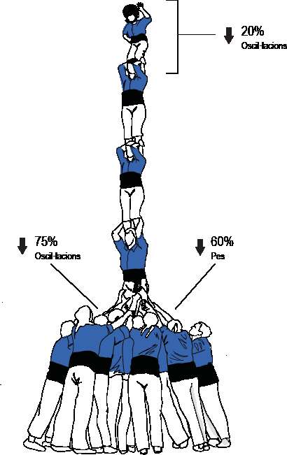 Un bon nivell tècnic de l'enxaneta pot fer disminuir un 20% les oscil·lacions del castell. La pinya pot absorbir un 75% de les oscil·lacions i un 60% de la càrrega que arriba al baix.