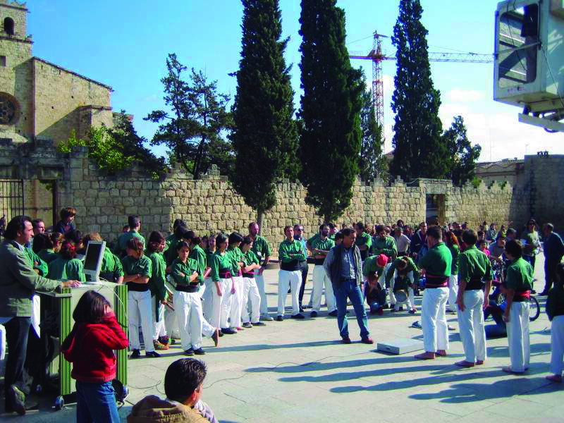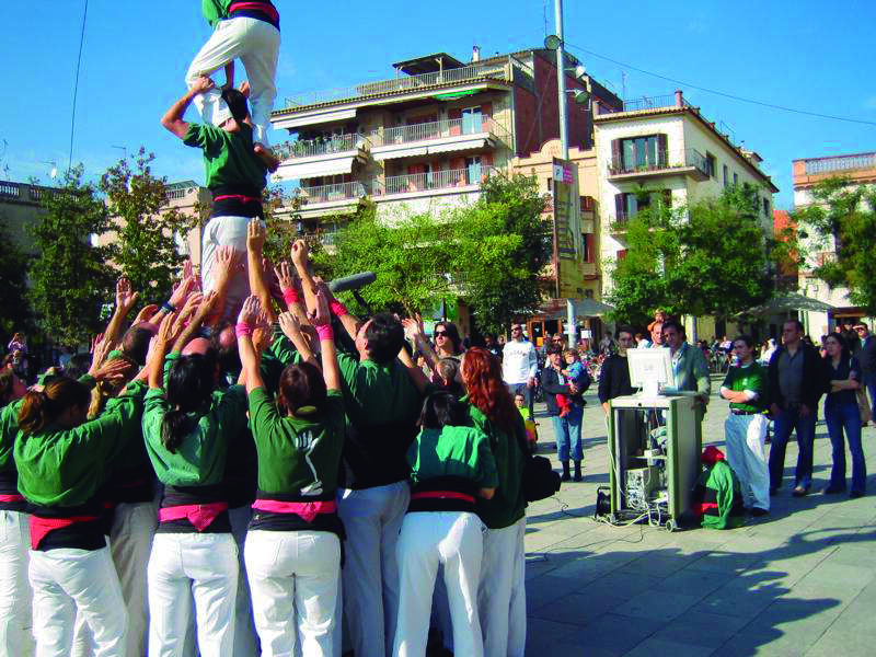 Estudi dels pics de càrrega i les oscil·lacions que es produeixen en els castells i el paper que té l'equip de mans, realitzat pel CAR de Sant Cugat el 2005. De dalt a baix, les imatges reflecteixen la preparació de la plataforma de càrregues, el pilar de 4 net sobre la plataforma i el pilar de 4 sobre la plataforma.