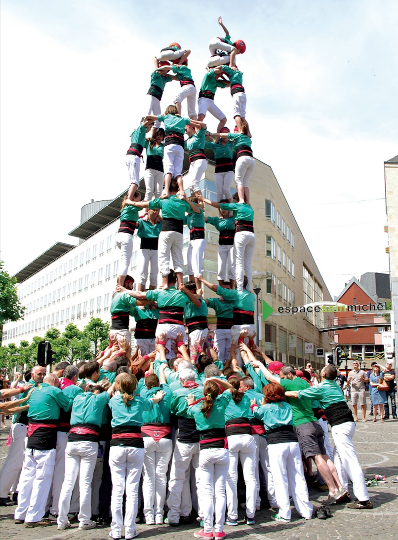 6 de 7 dels Castellers de Vilafranca a la ciutat belga de Lieja, el 7 de juny del 2014. En aquest cas, la combinació va ser un 4 i una torre.