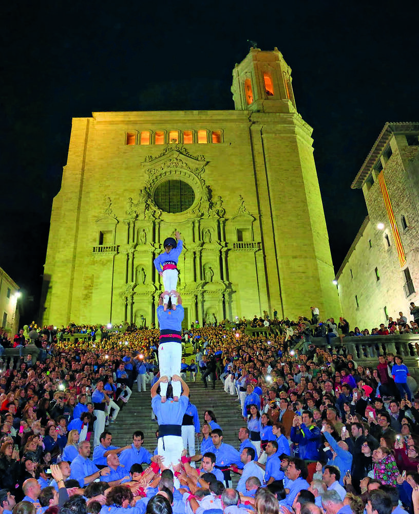 Pilar dels Marrecs de Salt pujant les escales de la Catedral de Girona, l'1 novembre del 2013.