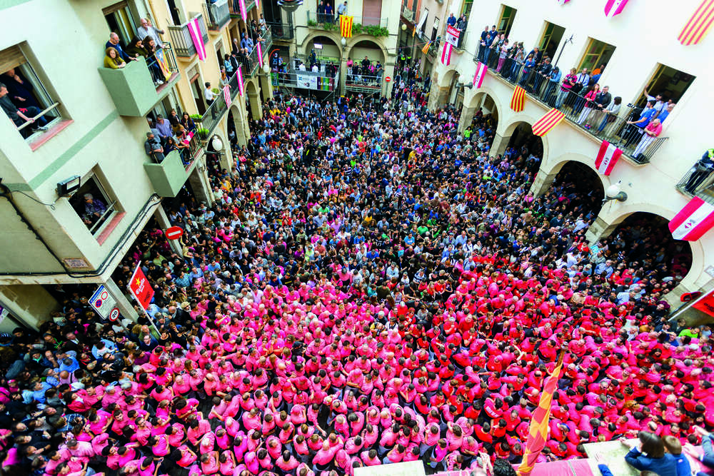 La plaça del Blat, plena de gom a gom i preparada per presenciar els nous reptes de les dues colles dels Xiquets de Valls.