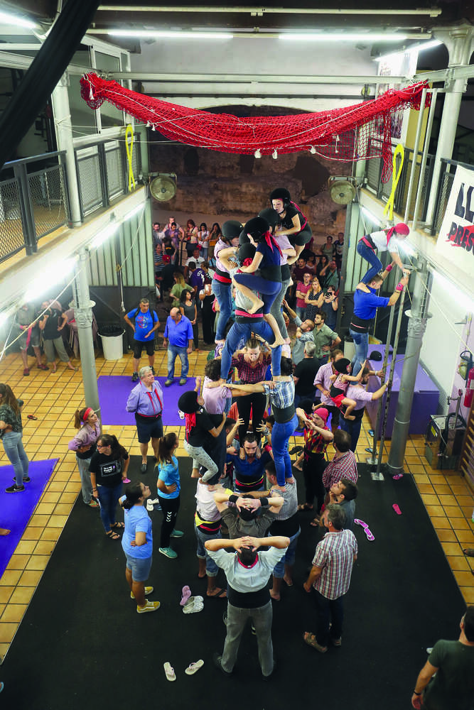 Assaig de canalla de la Colla Jove Xiquets de Tarragona, amb diverses proves alhora.